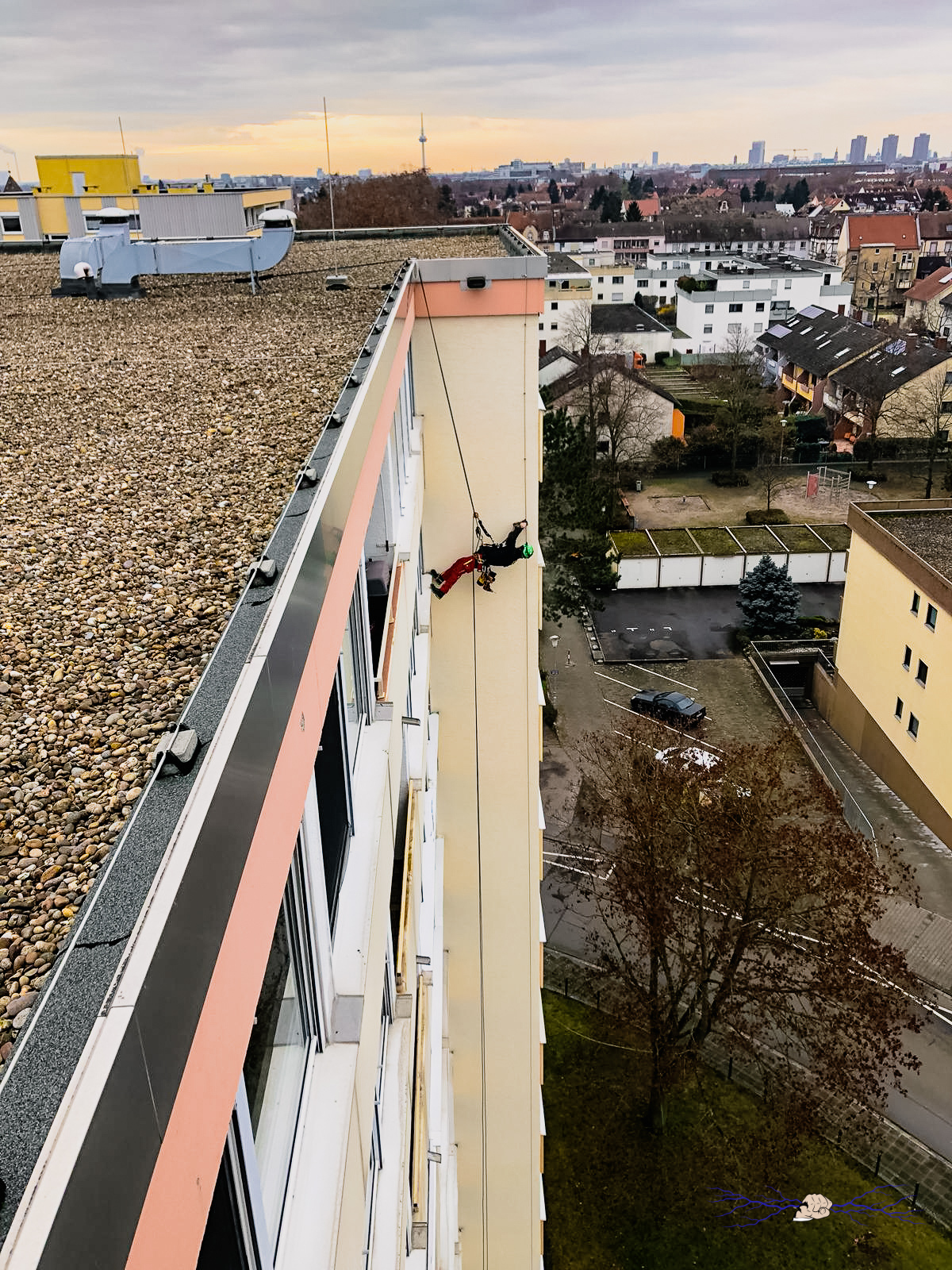 Alle metallenen Einrichtungen auf dem Gebäude (z. B. Dachrinnen) werden auf kürzestem Wege mit dem Blitzschutzsystem verbunden. Aus dem Dach herausragende Schornsteine, Antennenmasten, Lüftungsrohre, Lichtkuppeln und dergleichen werden mit getrennt angeordneten Fangstangen versehen, die ebenfalls mit den Fangleitungen verbunden werden. Von den Fangeinrichtungen führen Ableitungen an (oder in) den Gebäudewänden den Blitzstrom senkrecht nach unten zur Erdungsanlage.